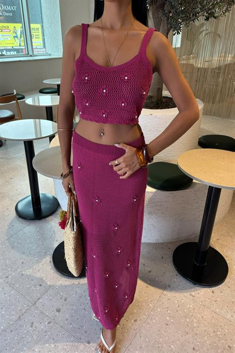 (6P.PACK) İnci ve Çiçek Detaylı Büstiyerli Triko Takım 10100