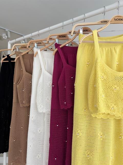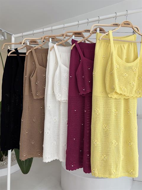 (6P.PACK) İnci ve Çiçek Detaylı Büstiyerli Triko Takım 10100