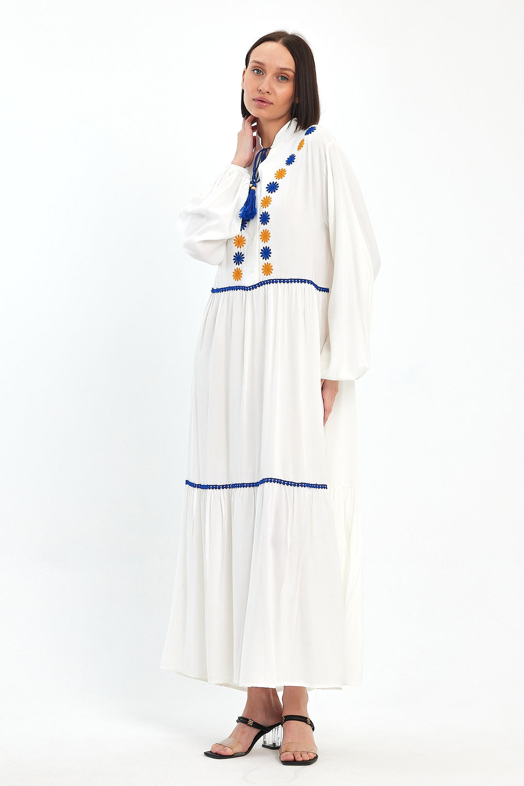 (4P.PACK) Bohemian Daisy Embroidered Maxi Dress