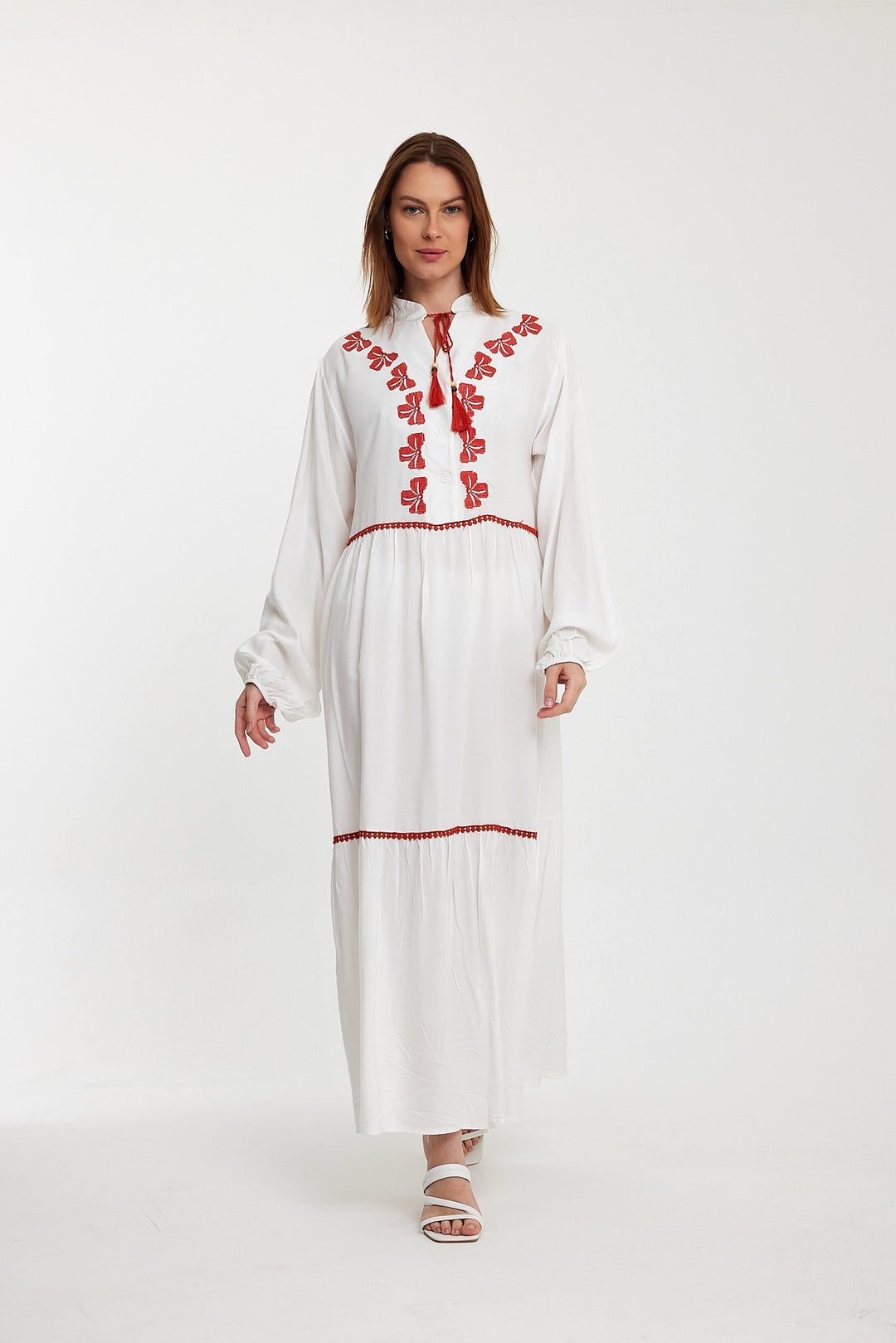 (4P.PACK) Red Bow Embroidered Maxi Dress