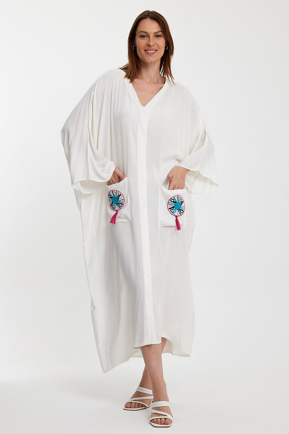 (4P.PACK) Royal Boho Embroidered Maxi Kaftan Dress