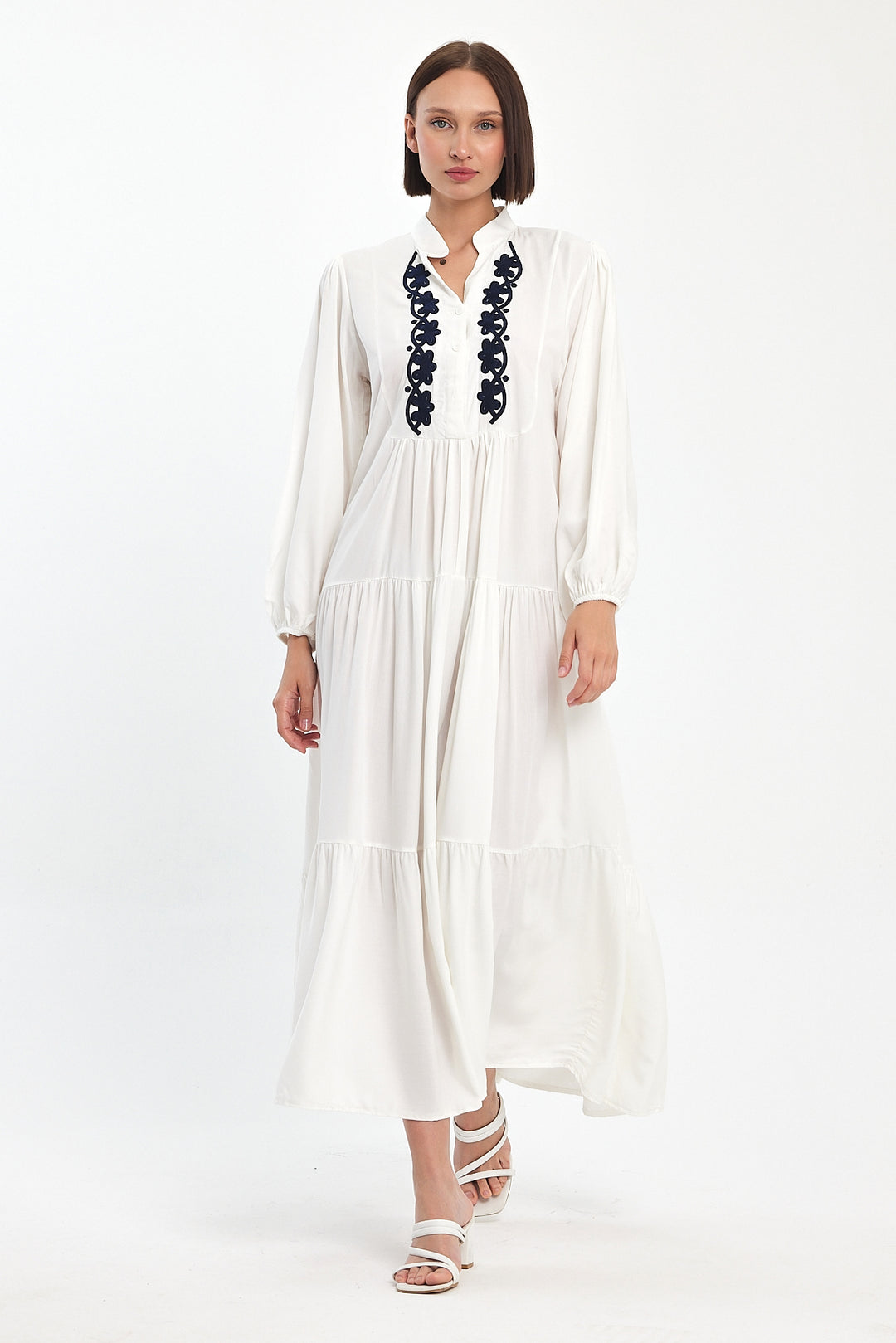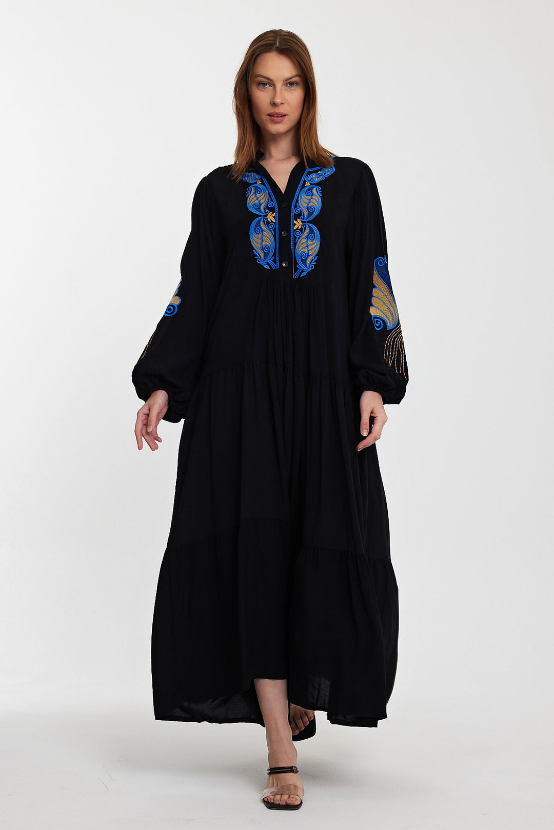 (4P.PACK)Midnight Peacock Embroidered Maxi Dress