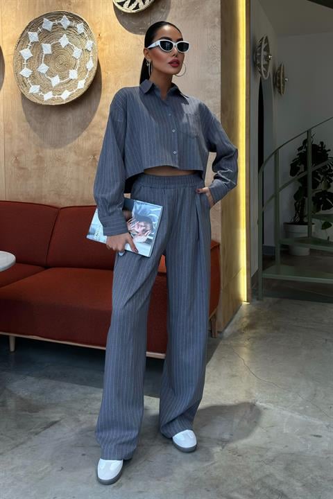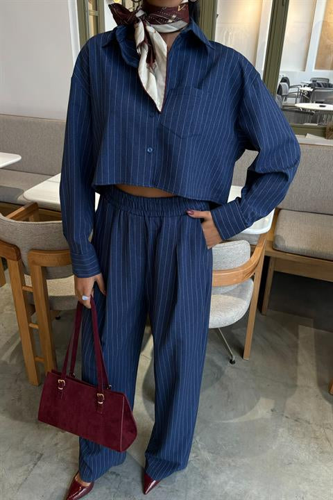 (6P.PACK) Crop Gömlekli Çizgili Takım 10080