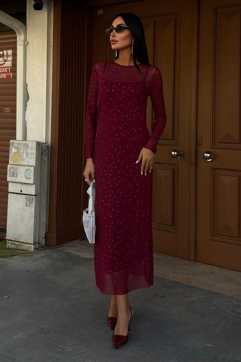 (6P.PACK) Taş İşlemeli Premium Tül Elbise 2829