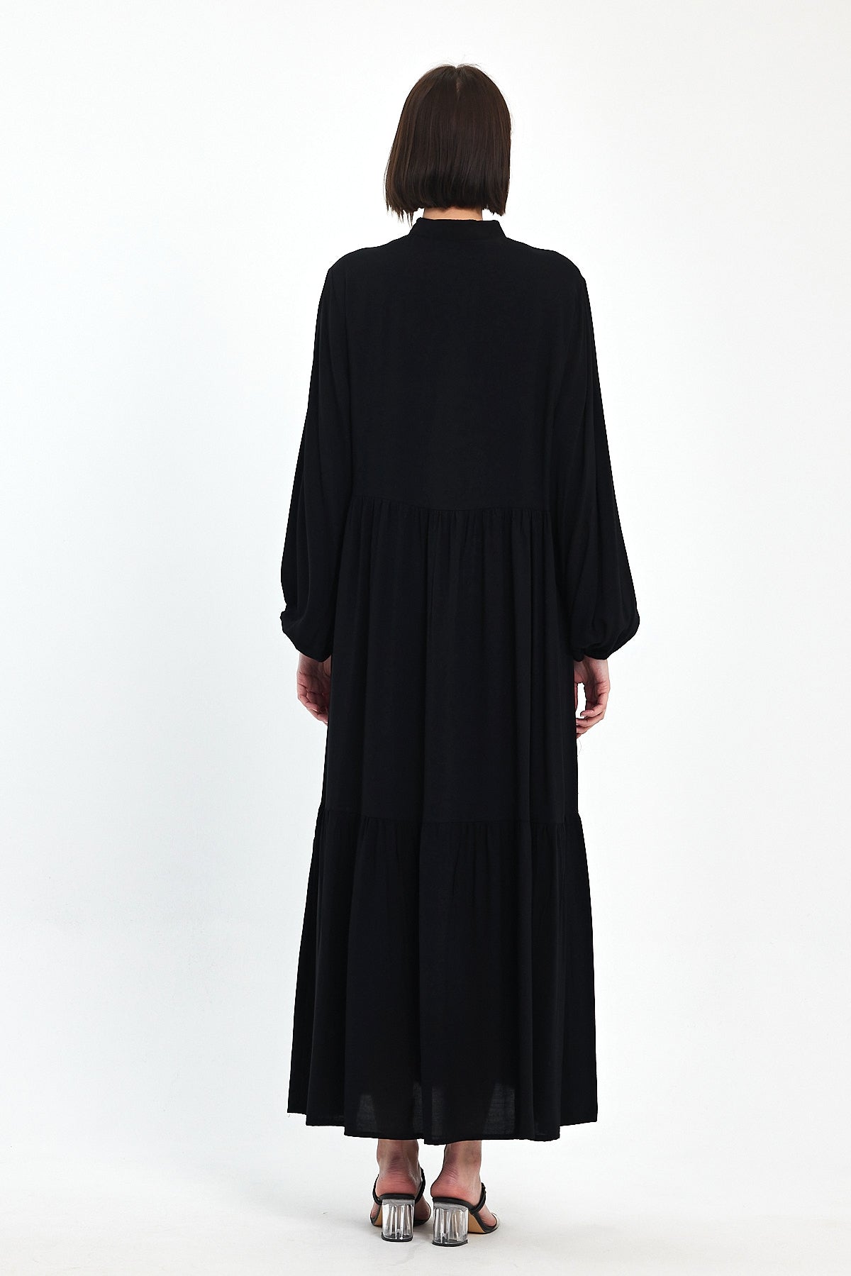 The Bohemian Daisy Embroidered Maxi Dress in black offers an elegant twist on folk-inspired fashion. Featuring intricate Blue & White Daisy Embroidery and tassel details at the neckline, this long-sleeve design is both flattering and timeless. Its soft flow and relaxed tiers make it ideal for boutique summer and travel collections.