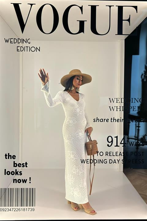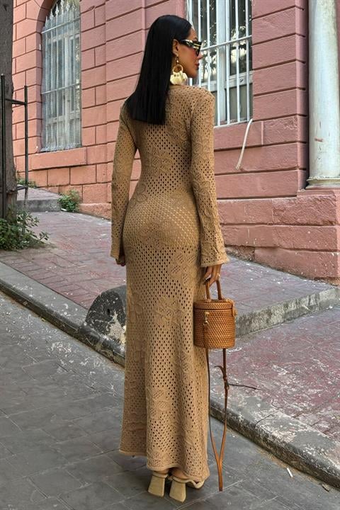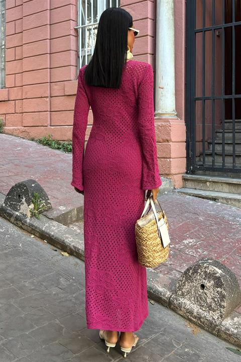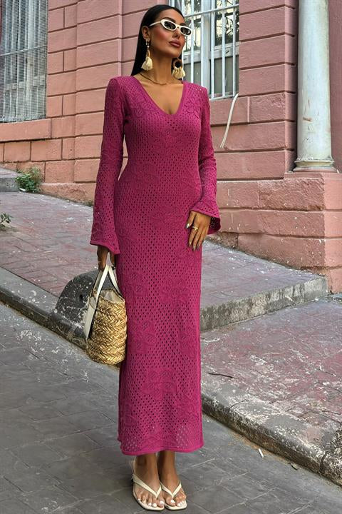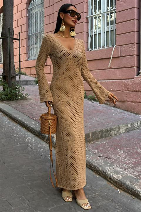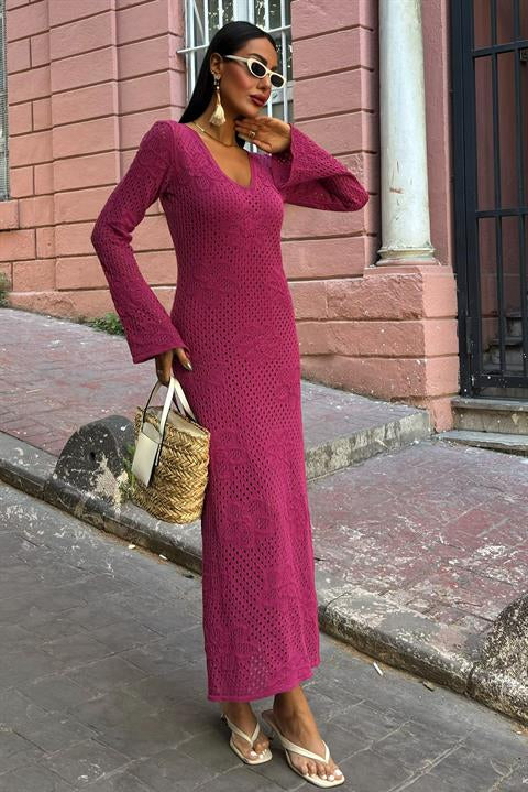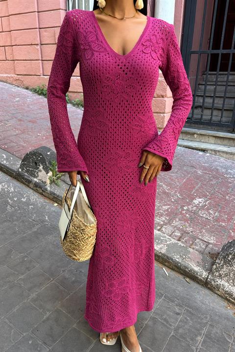 (6P.PACK) Çiçek Detaylı Ajurlu Triko Elbise 2857