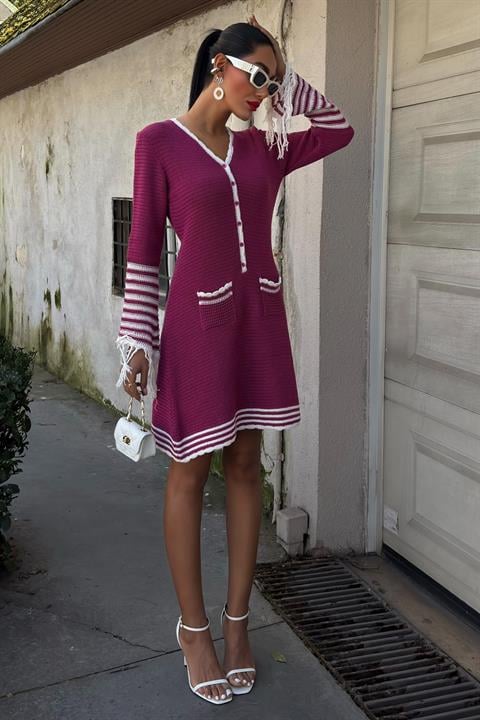 (6P.PACK) Triko Kolları Püsküllü Düğmeli Elbise 2849