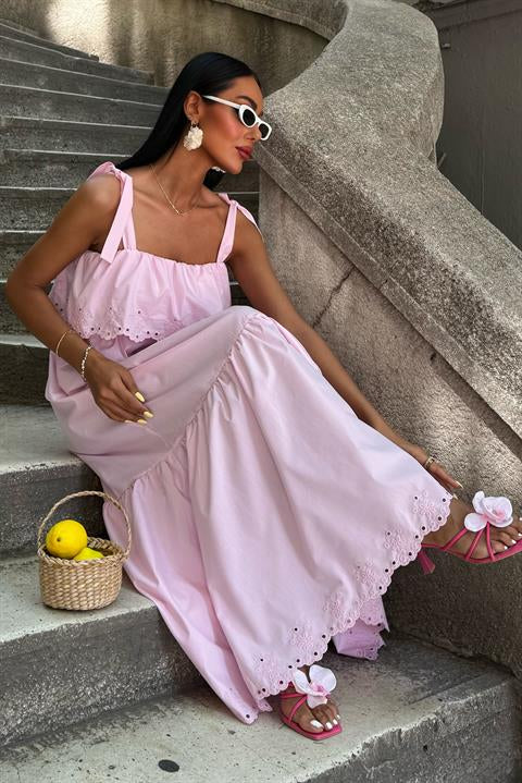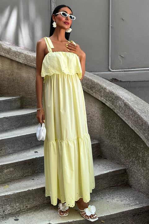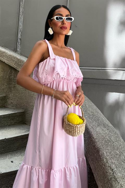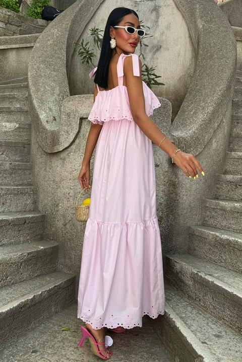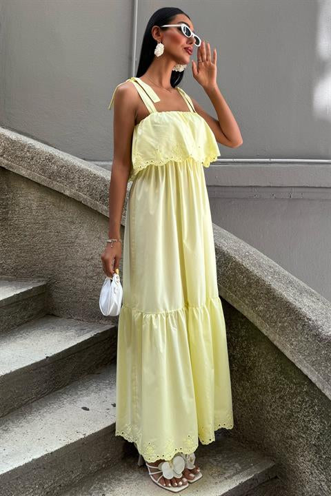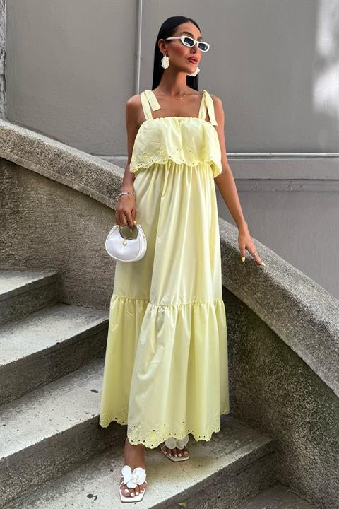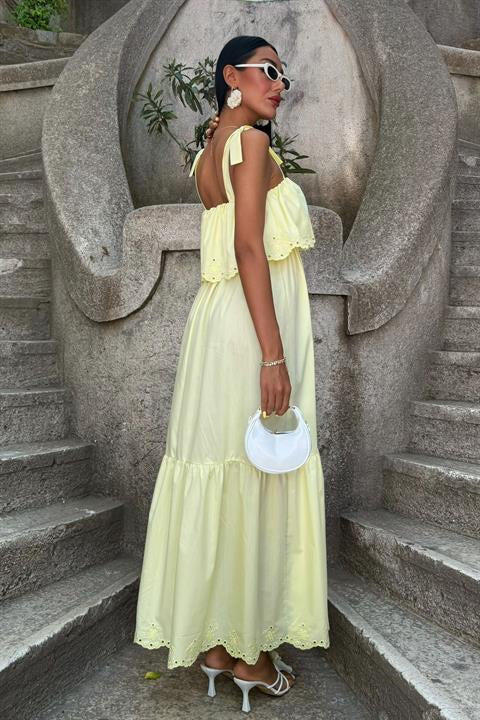 (6P.PACK) Etek Ucu Brode Nakışlı Boyundan Bağlamalı Elbise 2881